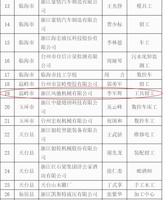 公司李軍輝被評(píng)定為“杰出臺(tái)州工匠”