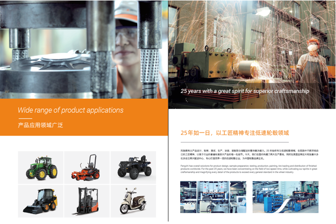 浙江風馳機械有限公司,成立于1994年,伴隨著時間的飛逝,一直以工匠精神專注生產非公路低速車輛輪轂,在董事長潘衛民的英明帶領下,風馳以自信、沉穩、堅實的腳步,企業逐步成為了世界500強合作伙伴、申請了企業獨有的輪輞品牌、創立了旗下5家子公司、獨創特殊工藝、產品革新換代,一直以實現“引領低速車輪發展,為中國制造正名”的使命及成為“全球知名低速車輛制造企業的最佳戰略合作伙伴”為愿景而一直努力著。