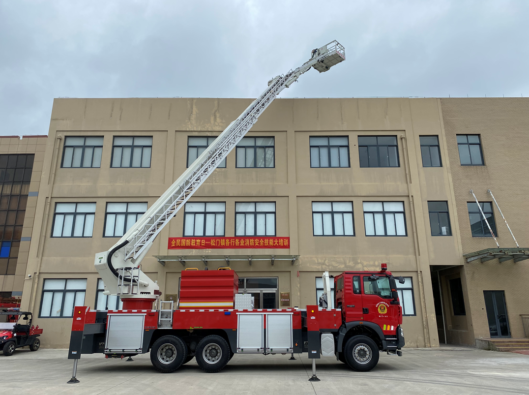 最后,松門鎮消防隊員為各參與人員展示了云梯救人演練,此云梯總長37米,造價400萬,消防云梯設有液壓升高平臺,供消防人員進行登高撲救高層建筑、高大設施等火災,營救被困人員,搶救貴重物資以及完成其他救援任務。在演練中,參與人員積極配合登上樓頂,等待云梯升起救援,使得整個過程順利進行;