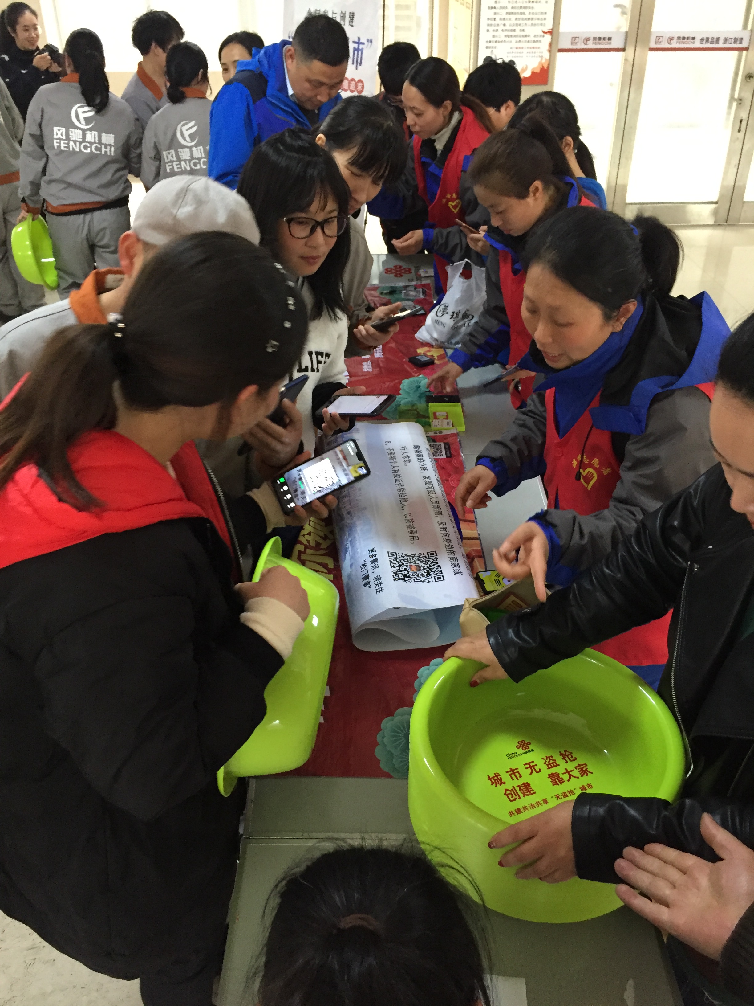 在聽講開始前,員工們紛紛配合民警掃碼關注了“無盜搶城市”二維碼,同時依序排隊領取了由派出所和聯通公司工作人員一起頒發的小禮品,各員工在領取禮品后,喜笑顏開,全神貫注的投入到視頻觀看、安全防盜意識聽講中。