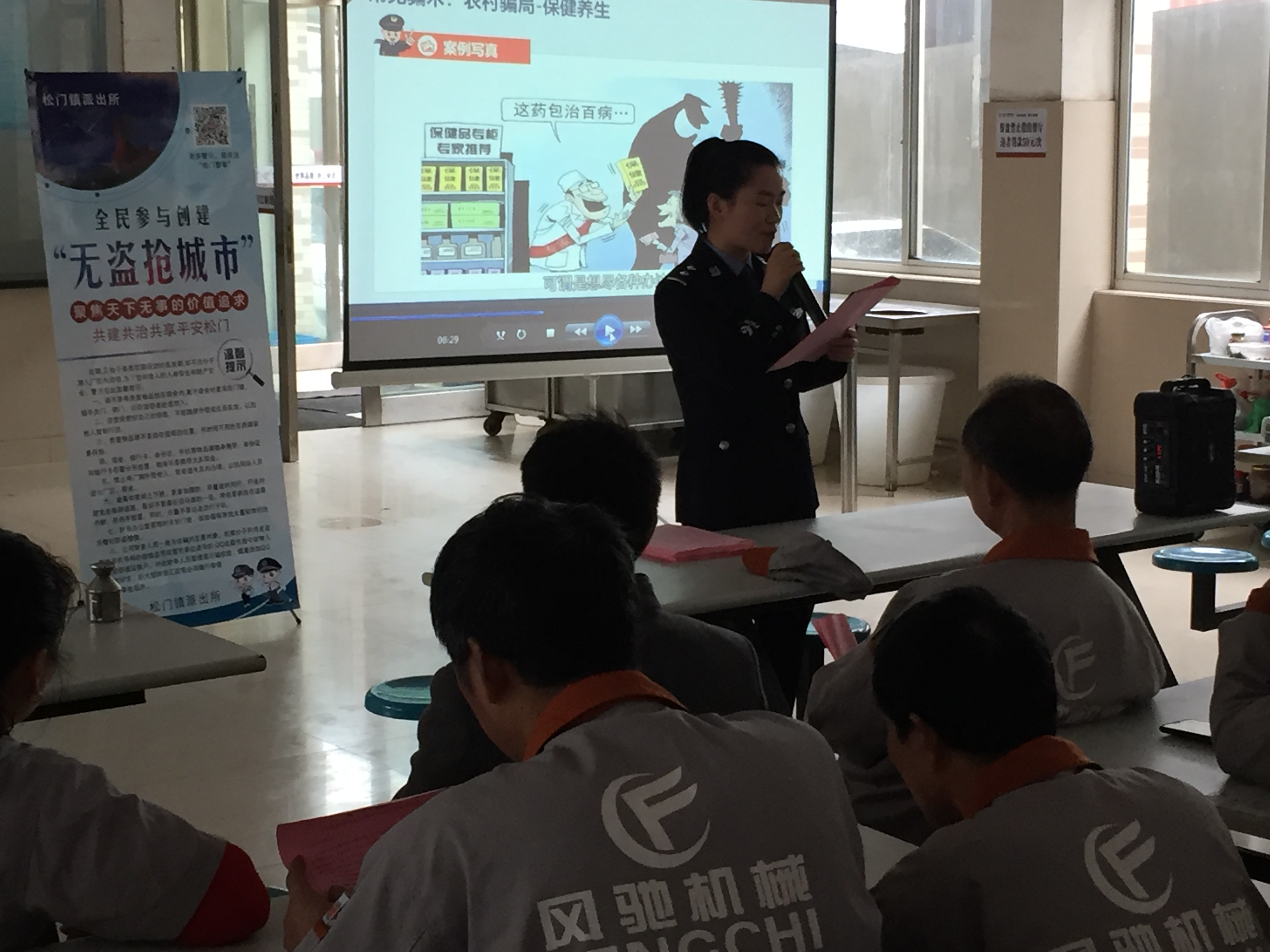 公司為了提高我企業員工的防盜、防強、防騙意識,同時大力支持創建臺州市“無盜搶城市”宣傳活動,在2019年3月20日下午,我司誠邀松門派出所人員前來給員工上了一堂防盜搶安全知識課,同時播放了創建“無盜搶城市”宣傳視頻。